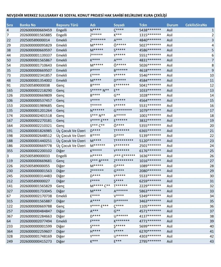 İŞTE SULUSARAY TOKİ KURA SONUÇLARI LİSTESİ